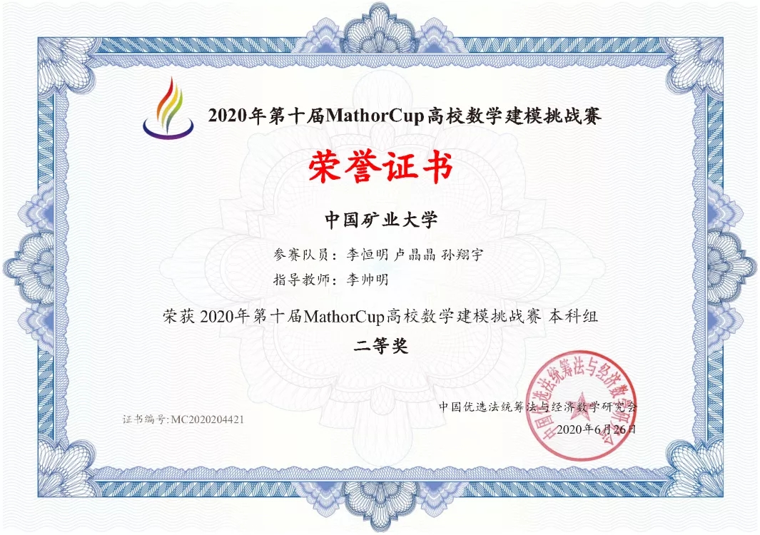 李恒明从失败中汲取教训,之后的时间里,李恒明和队友们一起努力学习数学建模知识,细心研究MATLAB如何使用。功夫不负有心人,在下一次的数学建模竞赛中,他们有了深厚的知识储备,处理问题也比较得心应手,在李恒明同队友的共同努力下,最终,他们取得了全国二等奖的好成绩。