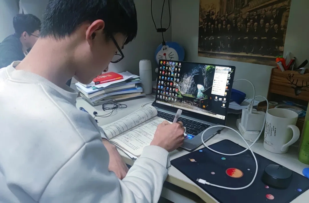 徐鸿阳同学认为,在学习过程中最为首要的,就是要始终紧紧跟随老师的思路,对于课上讲授的重点做好课堂笔记。“有些同学在课上常常会分心,却在课下花费大量时间看网课,我认为这样的效率可能不会太高。”