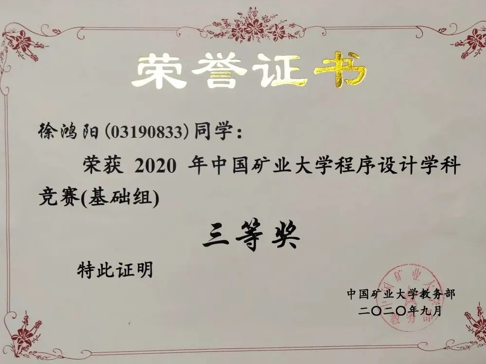 潜心求学,逐梦矿大——记澳门六合彩资料网站 2019-2020年度国奖获得者徐鸿阳