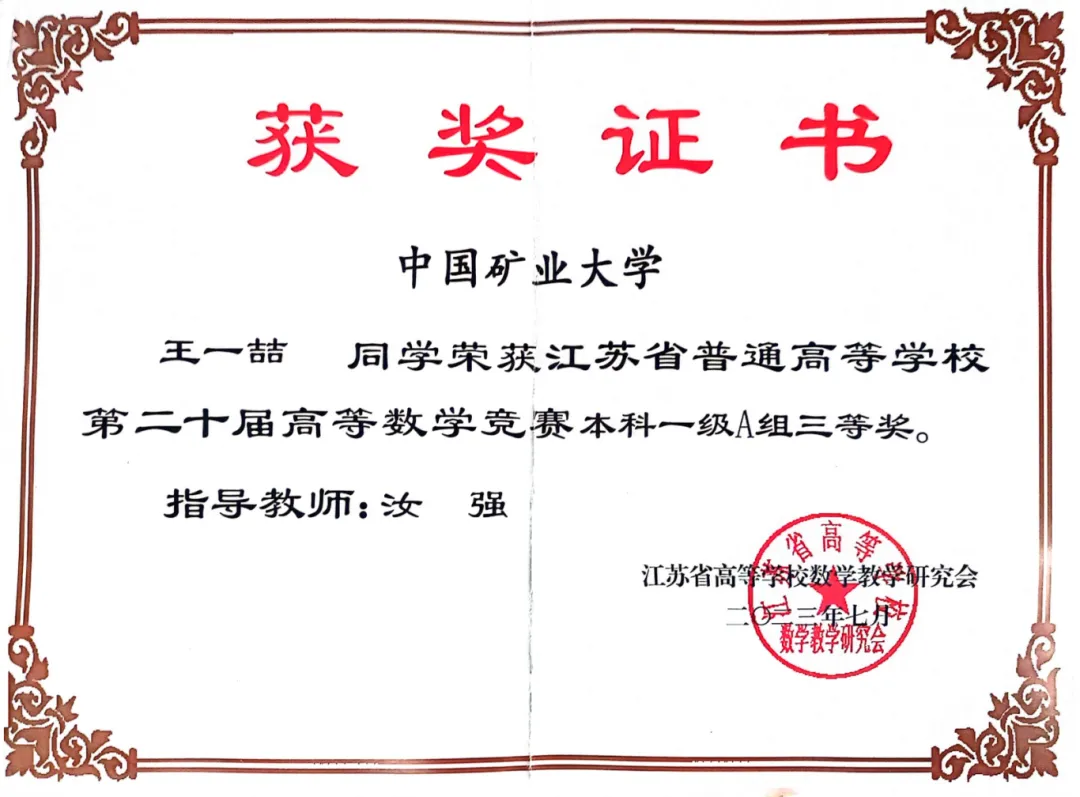 王一喆,男,共青团员,澳门六合彩资料网站-新澳门六合彩内部资料 2022级机械工程专业学生,获2022-2023学年中国矿业大学“优秀共青团干部”,国际大学生数学建模竞赛S奖,中国工程机器人大赛暨国际公开赛三等奖,第十九届江苏省数学竞赛三等奖,五一数学建模竞赛一等奖等奖项。