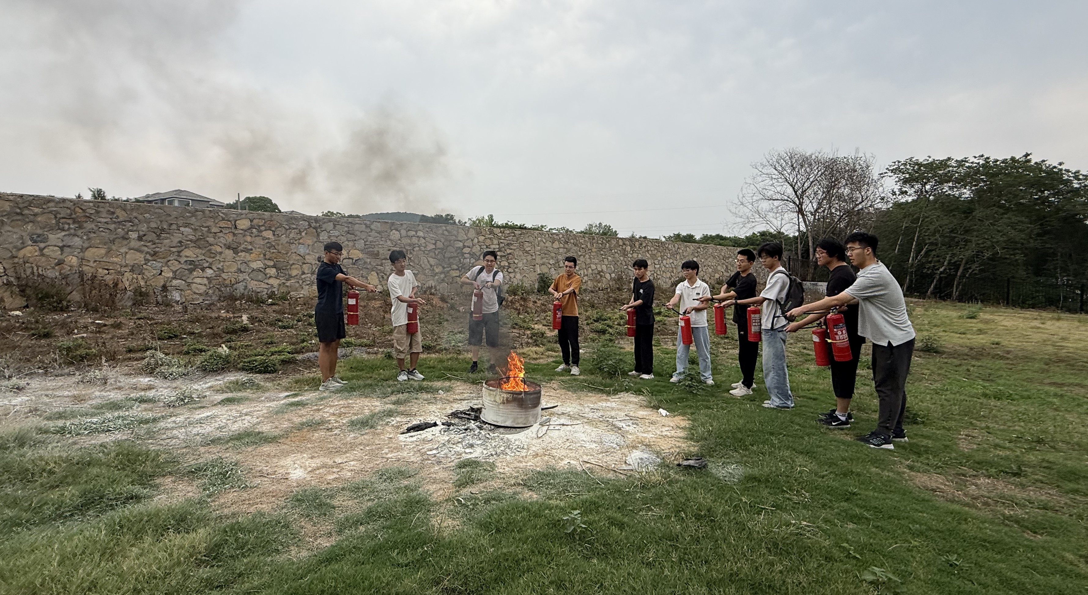 培训结束后,全体师生在瞿望老师的指导下,在体育馆西侧演练场开展了灭火演练活动。