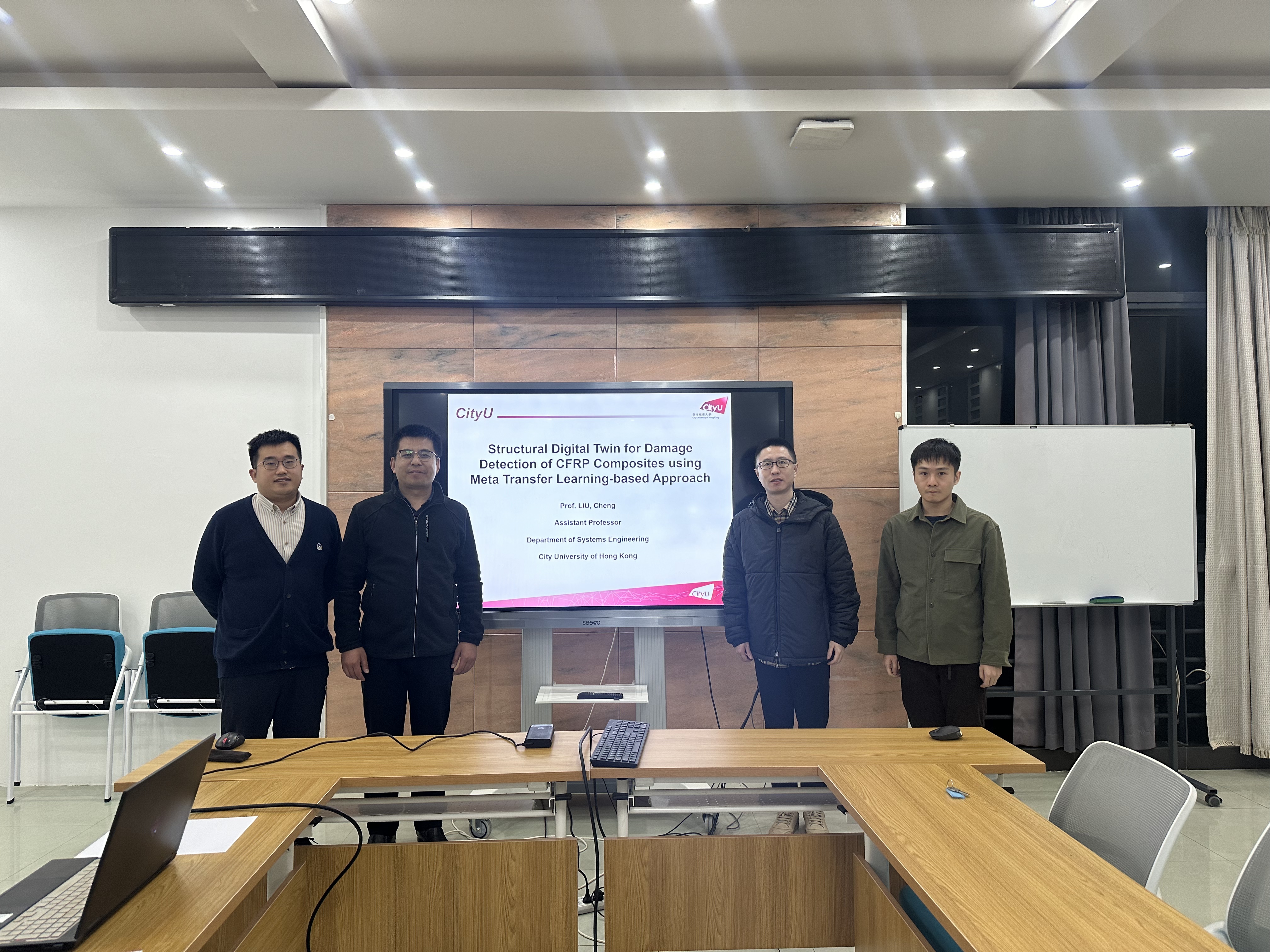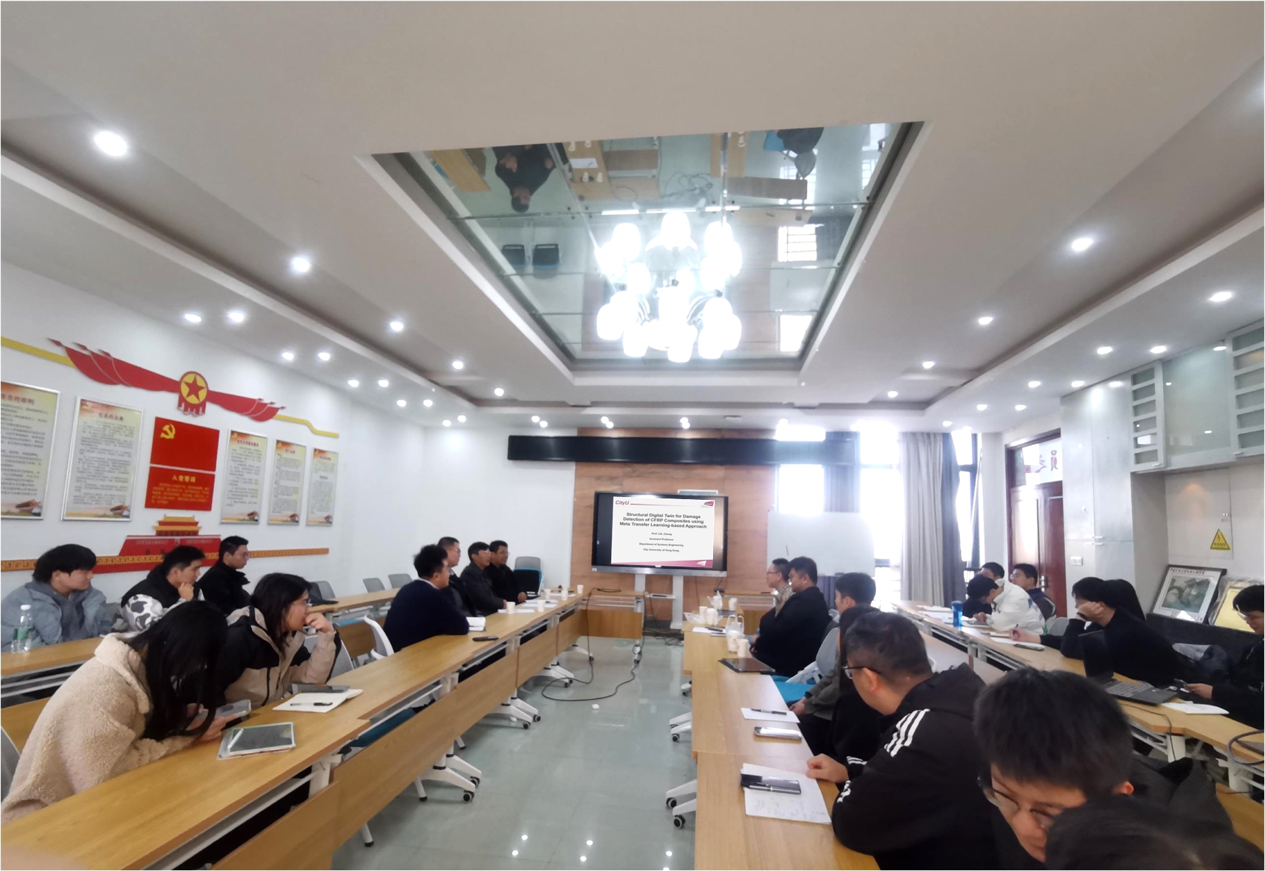 范孟豹教授对刘成博士的到来表示热烈欢迎,并对刘成博士的学术成就进行了简要介绍。刘成博士作了题为《Structural digital twin for damage detection of CFRP composites using meta transfer learning-based approach》(基于元迁移学习的CFRP复合材料损伤检测数字孪生方法)的学术报告。刘成博士的报告内容丰富,讲解深入浅出,拓宽了澳门六合彩资料网站 师生的学术视野。