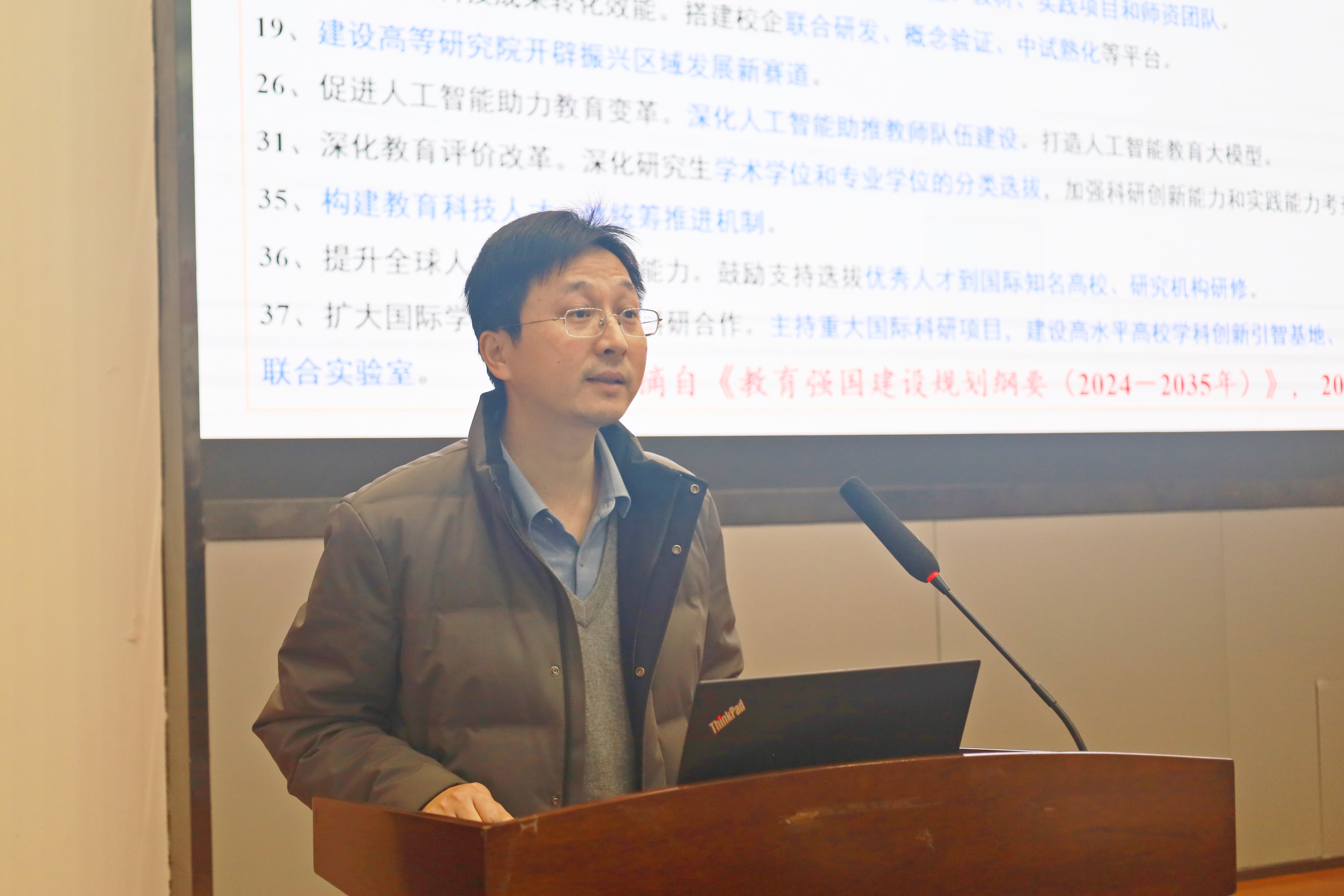 周公博院长代表澳门六合彩资料网站 领导班子作2024年度工作总结汇报。他指出,过去一年,在学校党委和行政的正确领导下,澳门六合彩资料网站 扎实推进工作,人才培养、学科建设、师资队伍、科学研究、合作交流等各项工作取得了良好成效。对2025年重点工作计划,他作了题为《党建引领 凝心聚力 抢抓机遇 强本拓新 冲刺第六轮 谋篇“十五五”奋力推进澳门六合彩资料网站 高质量发展》的汇报,详细分析了澳门六合彩资料网站 各项工作的进展和不足,部署了谋篇“十五五”的总体思路。他希望全体教职工继续凝心聚力,持续推进学科高质量可持续发展,加快推进特色鲜明国内一流研究型澳门六合彩资料网站 建设。