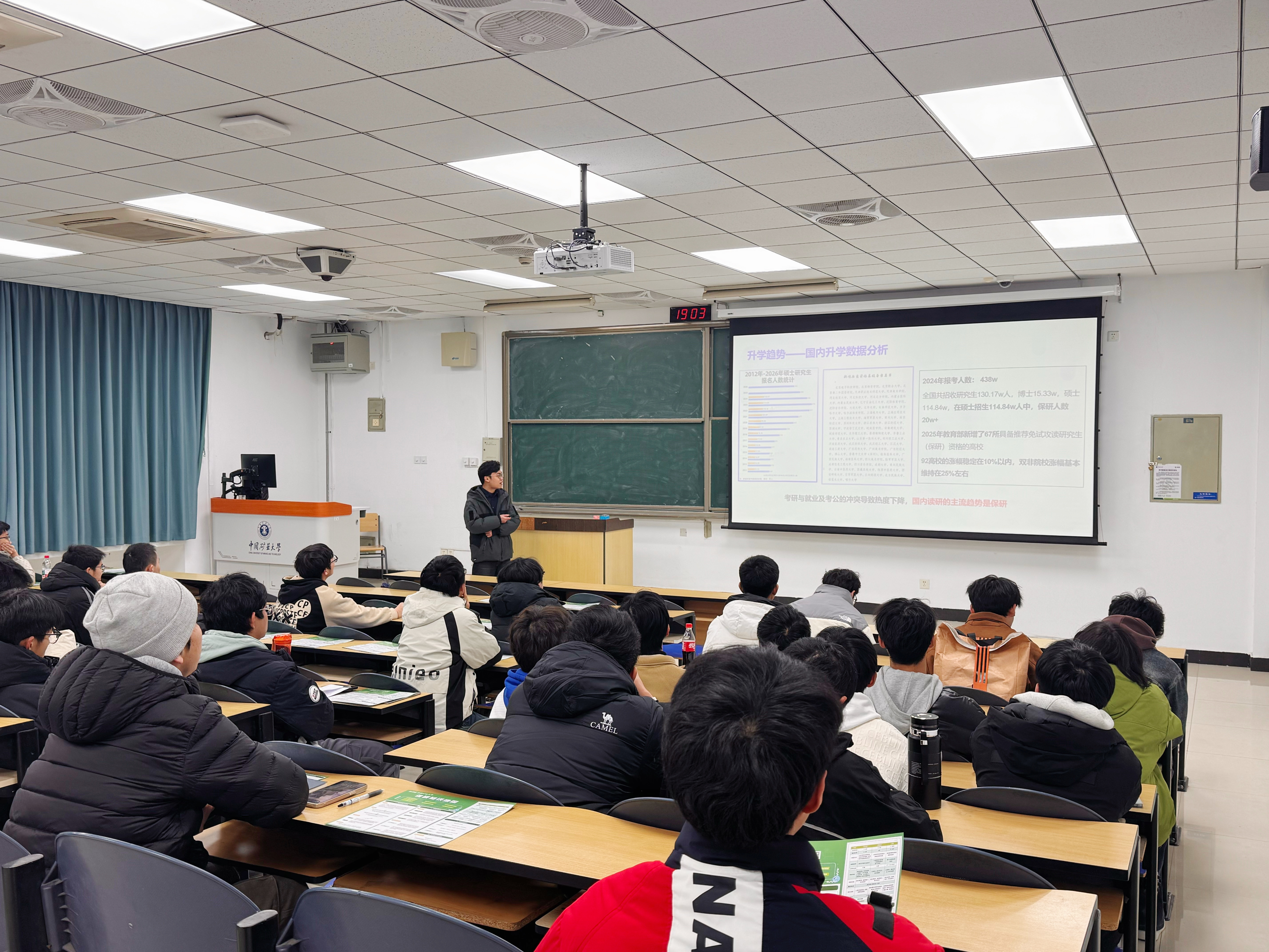 为深化学风建设,帮助学生明晰升学路径,12月21日晚,澳门六合彩资料网站 于博学楼教室举办了“‘好学’致远,研途筑梦”保研经验分享会。高顿教育李嘉图讲师受邀进行主题分享,澳门六合彩资料网站 2024级、2025级本科生参加现场交流。澳门六合彩资料网站 2025级专职辅导员何军、兼职辅导员郑雨坤参加活动。