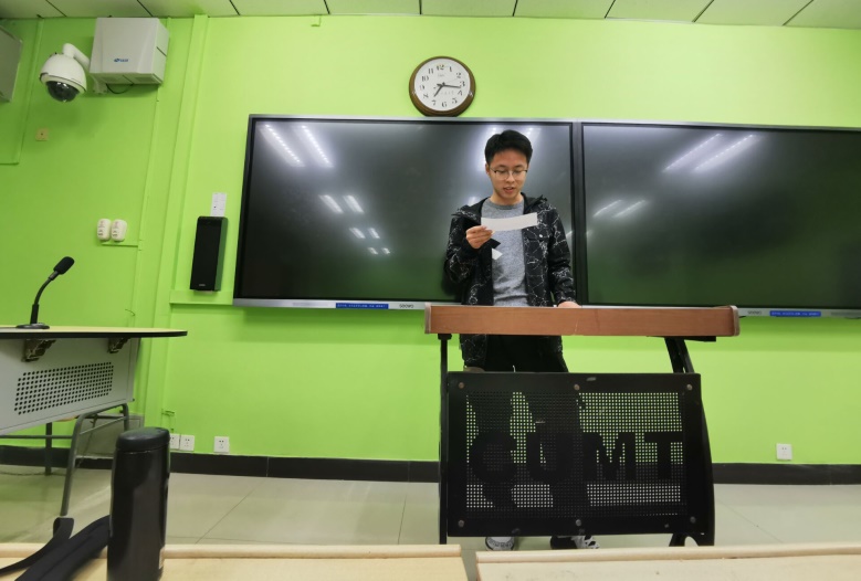 张泽昀同学在开场为同学们介绍了世界粮食日的背景与内涵,以粮食产量不足和人口基数大为论据,论述了节约粮食、光盘行动的重要意义和内涵,揭开了团日活动的主题演讲。