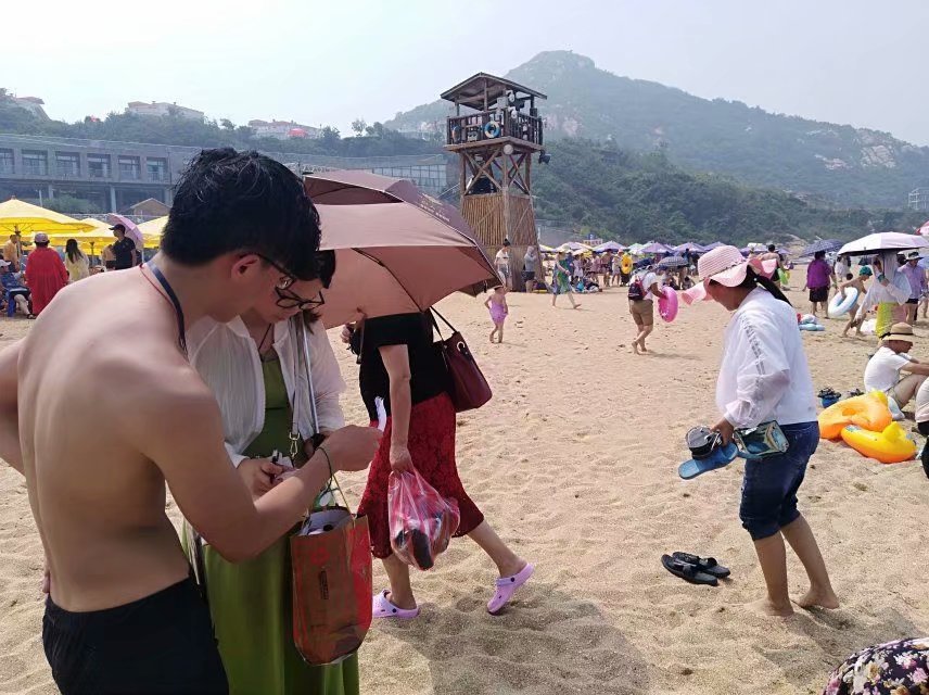 7月19日上午,澳门六合彩资料网站-新澳门六合彩内部资料 金色海滩暑期社会实践团队前往连岛海滨旅游度假区开展调研活动,在实践中宣传环境保护。