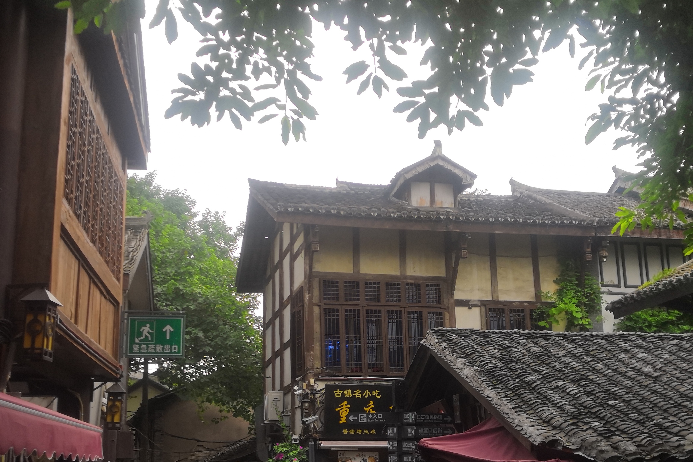 磁器口建筑具有明显的川东民居特色。在古镇的钟家大院内,具有南北兼融特色的四川四合院映入眼眶,与北方四合院比,院落相对较小,不过又比南方的四合院要大。钟家大院有敞厅和敞廊,各厢房与正房之间有门相连,而不是像北方四合院一般各自独立。钟家大院的屋顶高度也较北方同等规模四合院为高,在屋顶的瓦片中,每隔一定距离便有透明的玻璃瓦片。讲解员告诉调研团:“屋顶高是为了更有利于通风,影瓦是用来透光的,相当于汽车天窗。没有玻璃以前,那片瓦片被撑高来透光。”