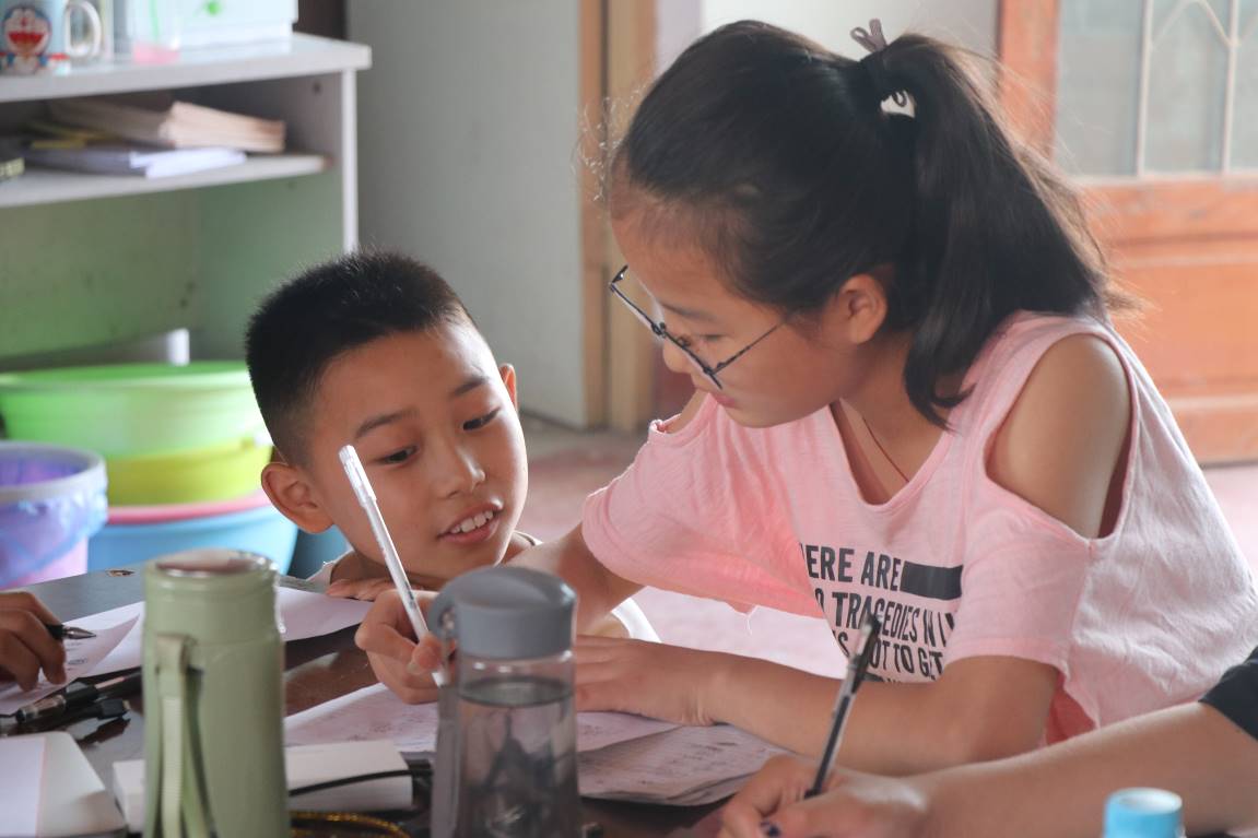 7月18日上午,孩子们早早地来到了教室。在短暂的休息后,“青”心支教团趣味数学课负责人给孩子们带来了丰富的趣味数学课。课上,孩子们思考了数字九宫格、找规律、两人相遇、鸡兔同笼等多种趣味数学问题,这些内容大大拓宽了孩子们的视野,也在调动孩子们积极思考的同时,培养了他们的基本数学素养。而这正是“青”心支教团的初心所在。在趣味数学课上,孩子们积极发言,现场讨论气氛非常活跃。时间如白驹过隙,第一节课在浓浓的学习氛围中悄然度过。