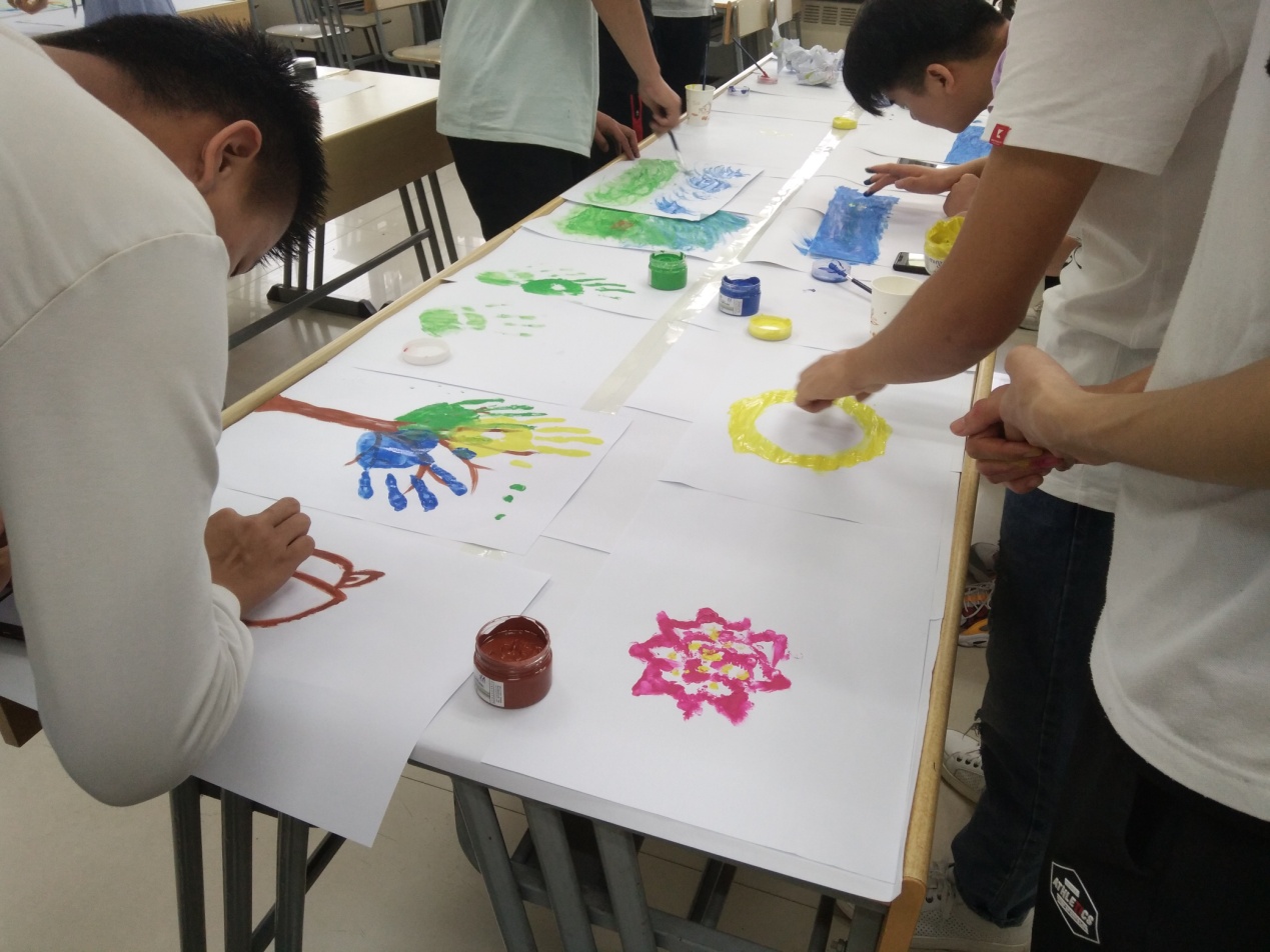 活动主要让同学们通过自己的双手,涂抹颜料,尽情的在画纸上画出自己的心声,自己的想法,让同学们直面自己的内心,将自己的感情表达出来。活动过程中,每一位参与活动的同学都积极的参与其中,相互协作配合,将一张张空白的画纸变成自己心中喜欢的模样,展现着自己的心声。