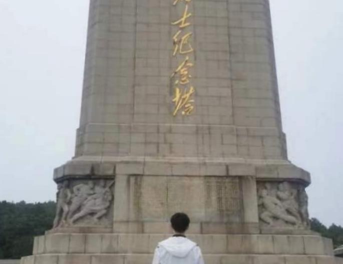 侯新宇同学参观淮海战役烈士纪念塔并为革命烈士默哀