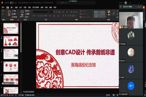 活动中期,实践团队员闫嘉祺先从淮海战役纪念馆的介绍开始,到其社会和历史意义及其内涵,随后进行CAD的介绍,演示如何运用CAD来进行绘制红色景点随后剪成剪纸,以最简单的话语让居民们更易理解。