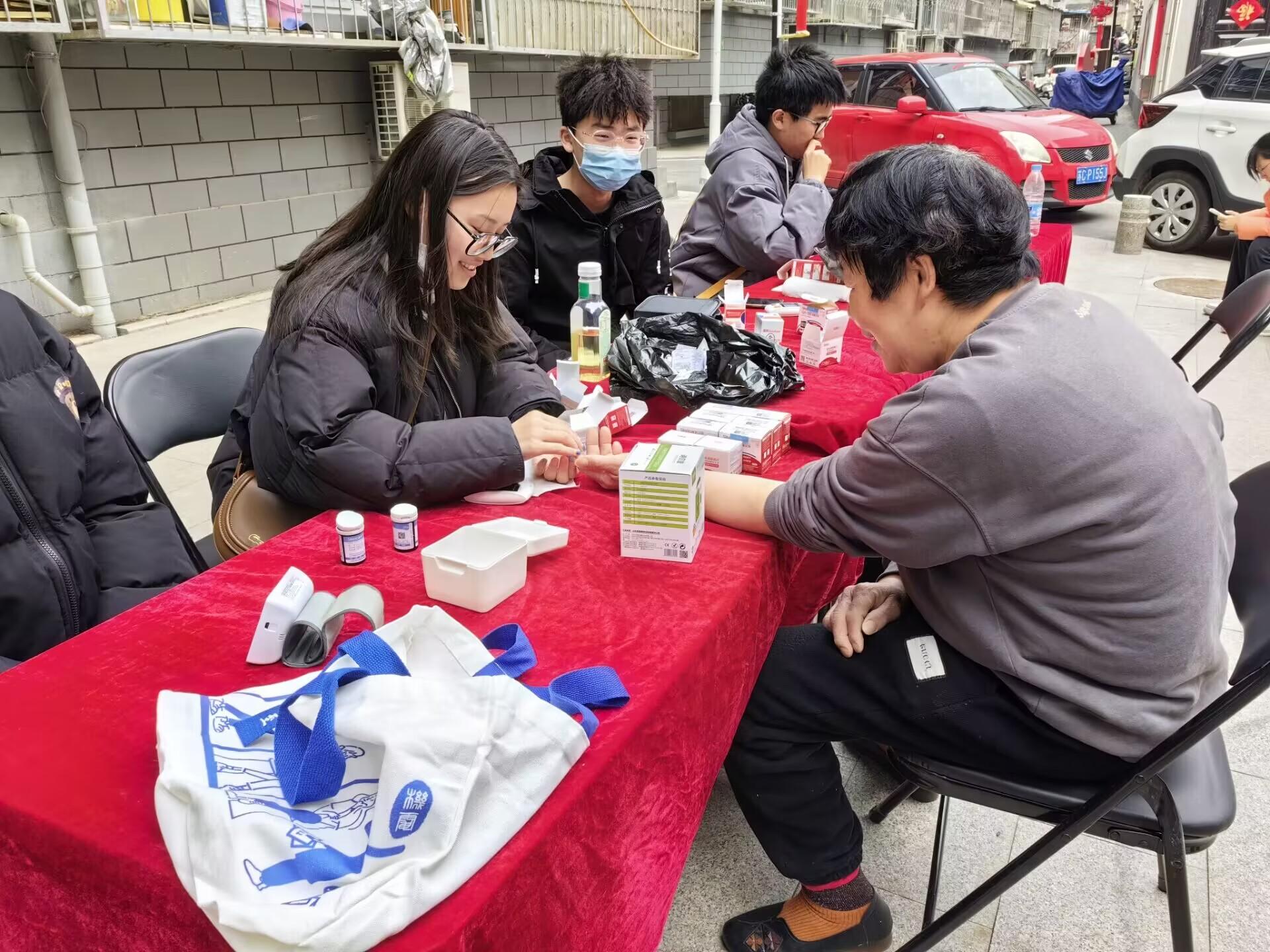 3月18日下午一点五十分左右,第二批志愿者们陆续到达凯旋门社区。在凯旋门社区的志愿活动主要分为两大部分,一是进行单元楼道的卫生清理,二是为有需要的中老年人进行血压与血糖的测量。一切准备就绪后,卫生清理组的志愿者们在社区工作人员的带领下前往各个楼道进行卫生打扫,血压测量组的志愿者们则在社区小广场开始为老人们进行测量。