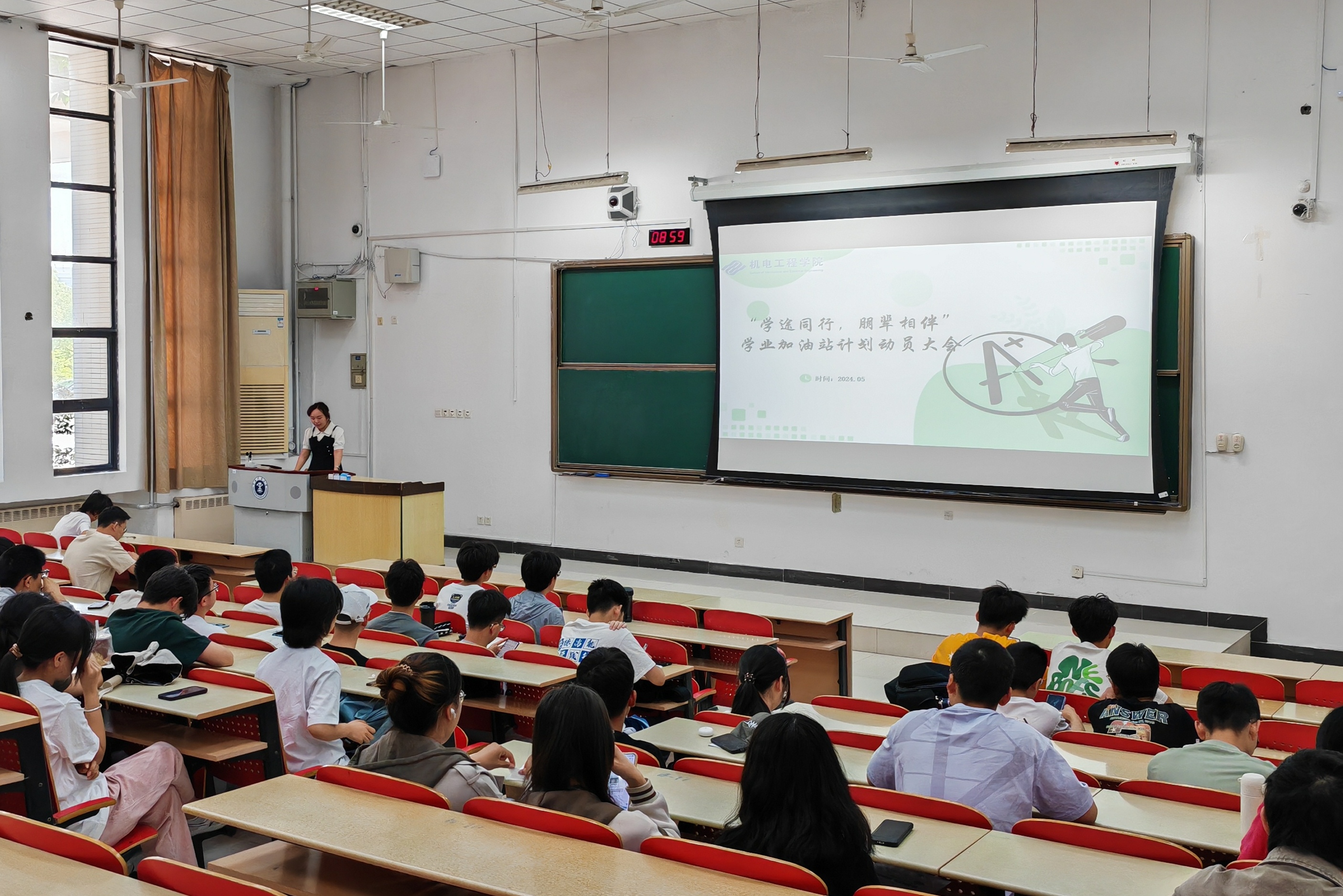 本科2023级在博学2号楼C101教室召开“学业加油站”计划动员大会。会议由2023级辅导员吴丹妍老师主持。