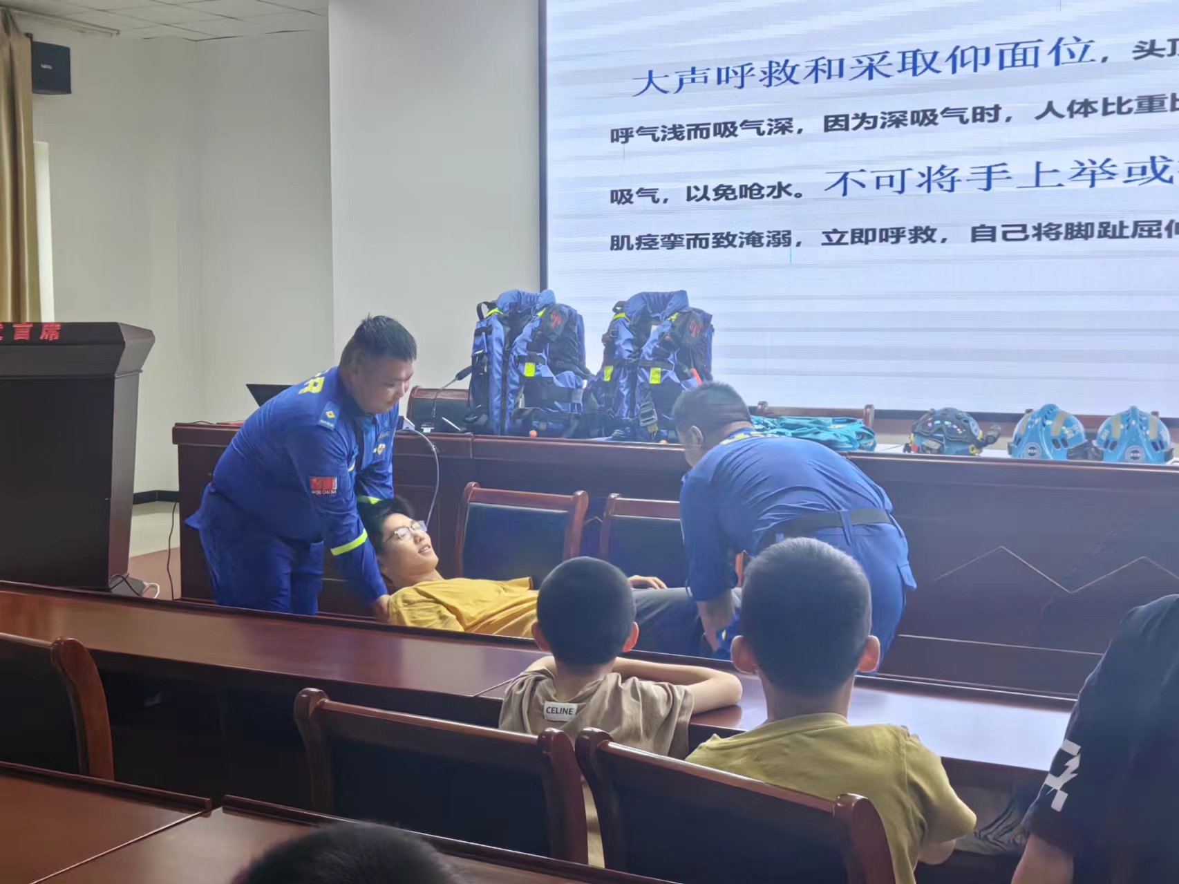 青心支教团携手蓝天突击救援队,于7月16日上午在爱心暑托班成功开展了一场防溺水安全教育及急救方法普及课程。