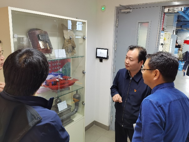 在与清华大学基础工业训练中心交流中,李双寿主任简要介绍了中心党建工作的基本情况和工作成效,他说,党建工作要紧密联系学校业务进行开展,与学校的发展方向同频共振。姚启明副主任介绍了工业训练中心的运转体系以及“三位一体”的教书育人模式,包括价值塑造、能力培养和知识传授。同时,与会老师们就课程思政、劳动教育课、毕业课程设计等话题进行讨论交流。交流结束后,在基础工业训练中心老师们的带领下,支部一行参观了木工坊、钳工坊、精密测量、人工智能、智能制造、逆向工程、铸造、焊接、机械加工制造等实验室。在焊接实验室,材料成型实验室副主任高党寻就“红船焊接项目”的由来以及如何引领学生在教学实践中学习中国革命精神之源—“红船精神”做了详细介绍。