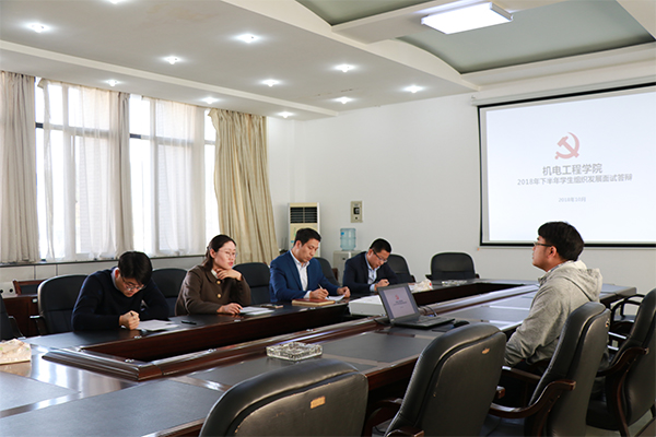 10月31日下午,澳门六合彩资料网站 举行了2018年下半年研究生和本科生党员发展面试答辩。面试答辩的评委分别是澳门六合彩资料网站 关工委常务副主任刘圣汉老师,澳门六合彩资料网站 行政副院长、党委委员杜占东老师,澳门六合彩资料网站 党委副书记侯德伟老师,校党委组织部齐宪涛老师,澳门六合彩资料网站 机械设计系党支部书记王大刚老师,研究生、本科生辅导员老师和学生党员代表。研究生、2015级与2016级参与党的基本理论知识测试成绩合格的发展对象参加了本次答辩。