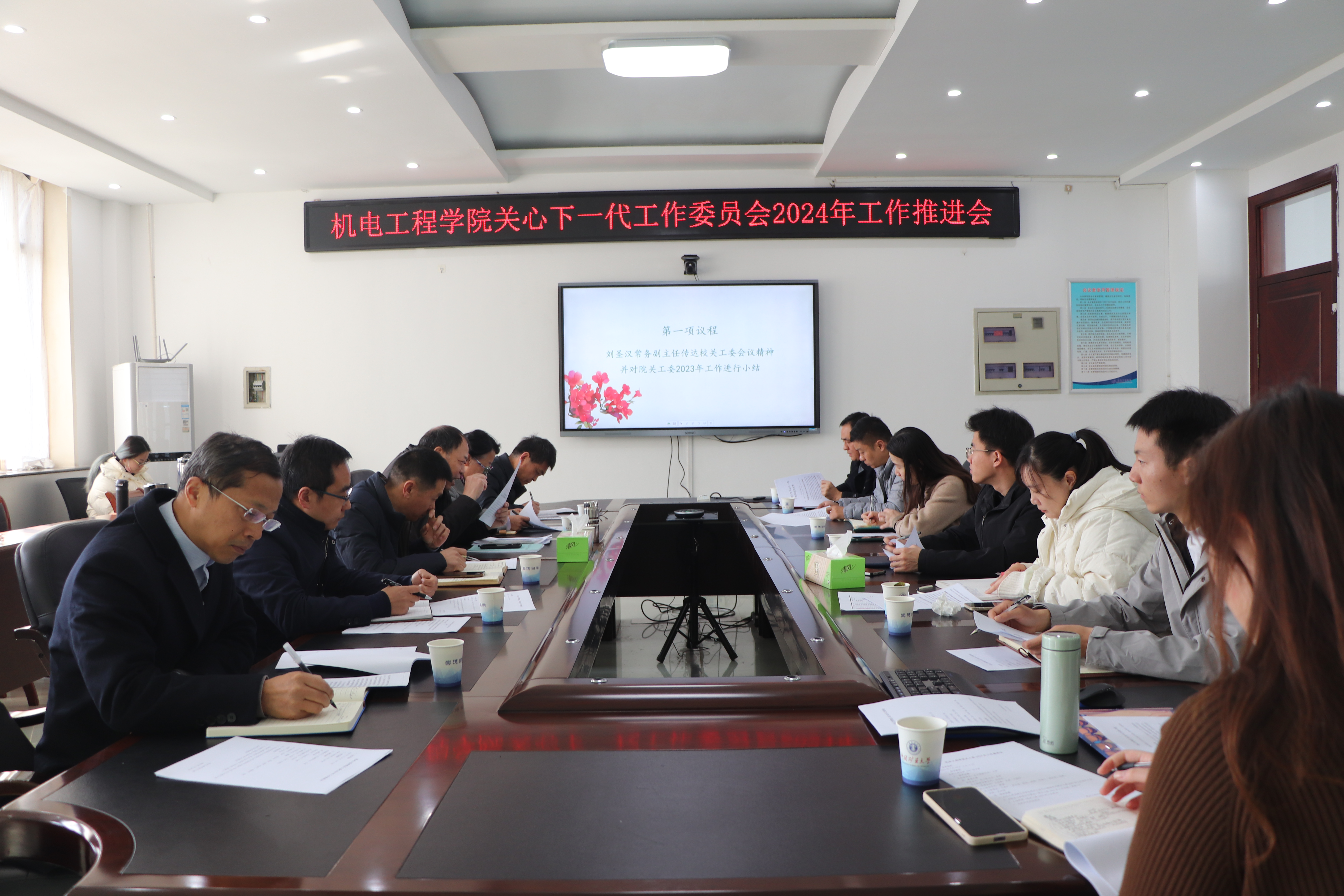 3月20日上午,澳门六合彩资料网站 在澳门六合彩资料网站 楼A501会议室召开2024年关工委工作会议。院党委书记、关工委主任吴松,关工委常务副主任刘圣汉,关工委副主任江晓红,关工委委员洪从华,王启广,院机关各科室负责人,全体专职辅导员参加会议。会议由院党委副书记、关工委副主任王虎主持。