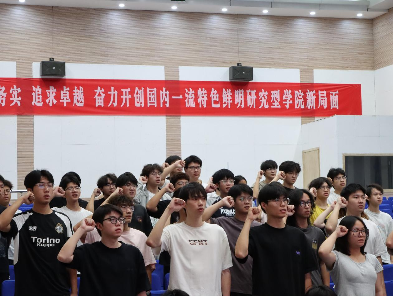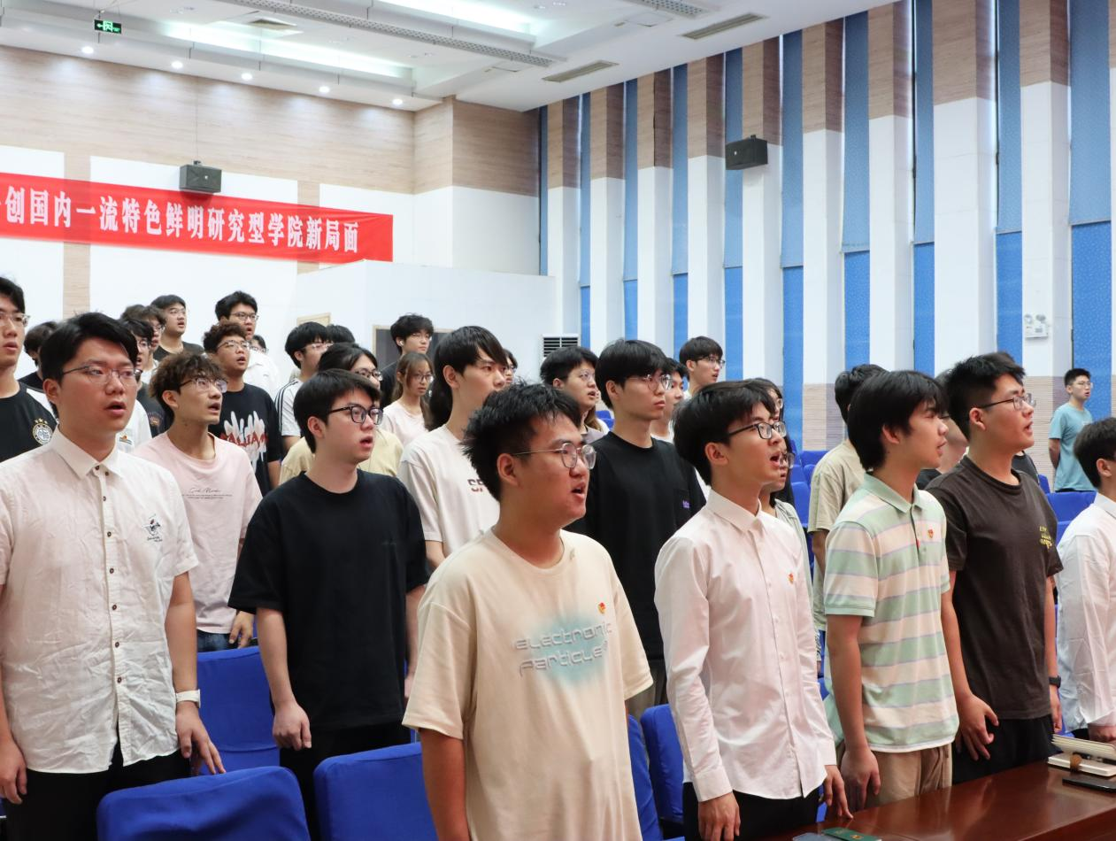 2025年7月2日上午,澳门六合彩资料网站 在澳门六合彩资料网站 报告厅庄严举行了以“七月薪火传信仰,新程逐梦绽团光”为主题的新发展团员入团仪式。院党委副书记韩福顺、院团委书记汪凯、2024级辅导员吴丹妍、25名2024级新发展团员、18名2023级新发展团员、11名2022级新发展团员、4名2021级新发展团员、10名优秀团员代表及5名工作人员共同参加了此次活动。本次新发展团员入团仪式由院团委学生副书记郭一鸣主持。