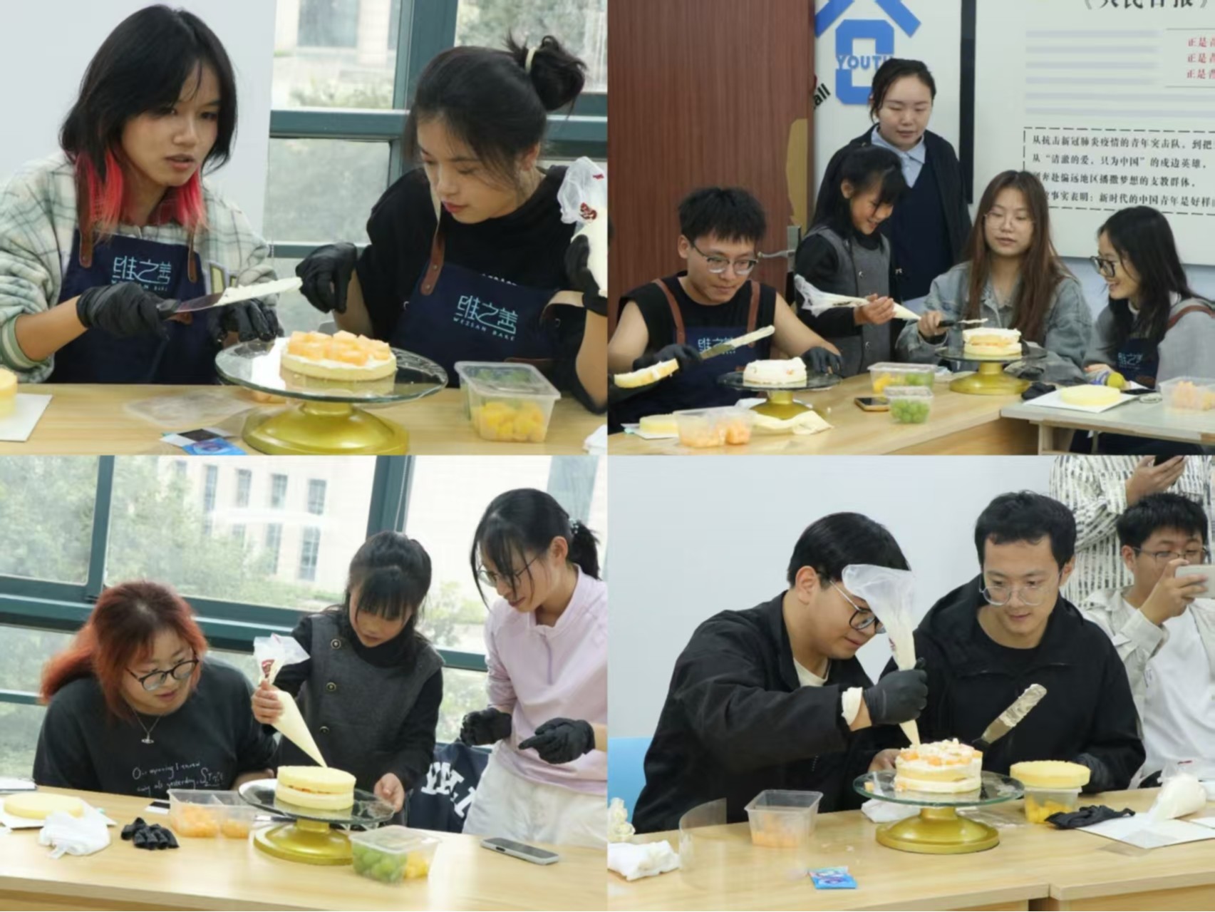 为了丰富学生课余生活,缓解学业压力,增进同学间的交流协作,澳门六合彩资料网站 于2025年10月18日下午在桃二C418举办了蛋糕DIY活动,主题为“秋阳慢焙,把温暖裹进奶油里”。来自各年级的40名的学生踊跃参与,在互动中体验手工创作的乐趣。
