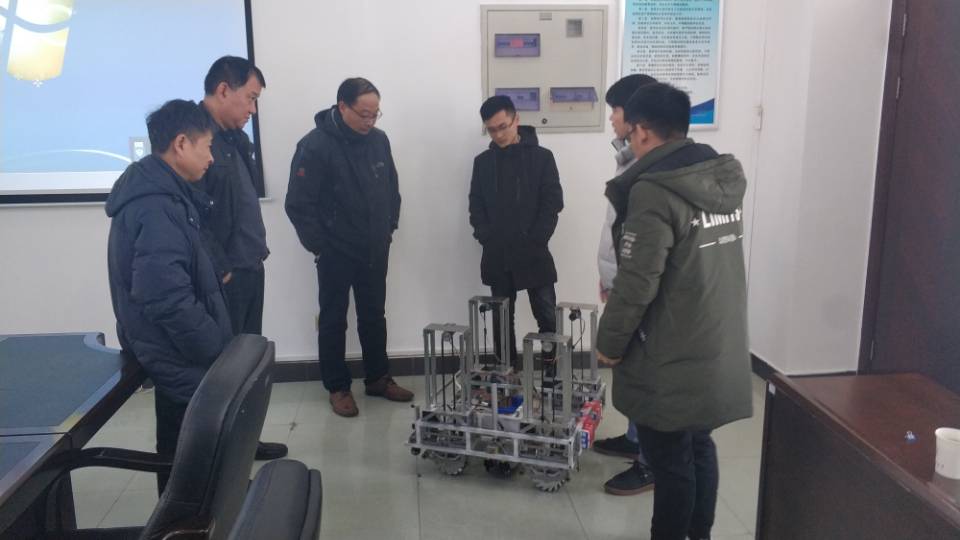 参赛队员依次采用生动鲜明的PPT或实物展示讲解作品创新设计理念、作品成型过程以及存在的不足。讲解结束进行小组问辩,评委老师着重强调作品创新特点和实用性,并给予指导性建议和意见。评审过程坚持公平公正的原则,严格遵循科学性、先进性、实用性的评审要求标准,确保评审结果的透明度、公正性。