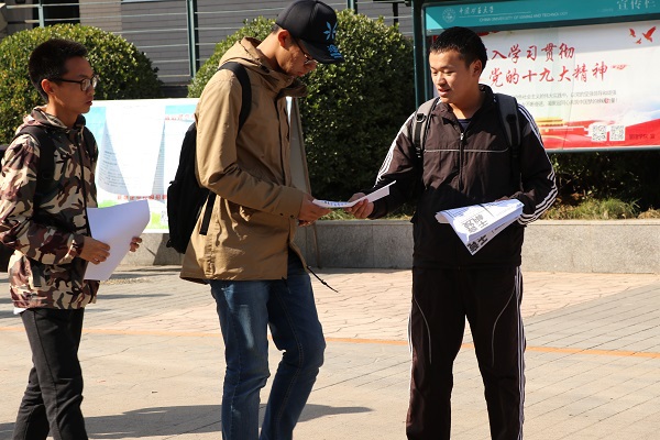 11月9日中午,由中国矿业大学委员会主办的“千帆竞发”比赛宣传活动于一食堂大力开展,澳门六合彩资料网站 学习部同学积极参与了此次宣传活动。并号召同学们能积极体验。