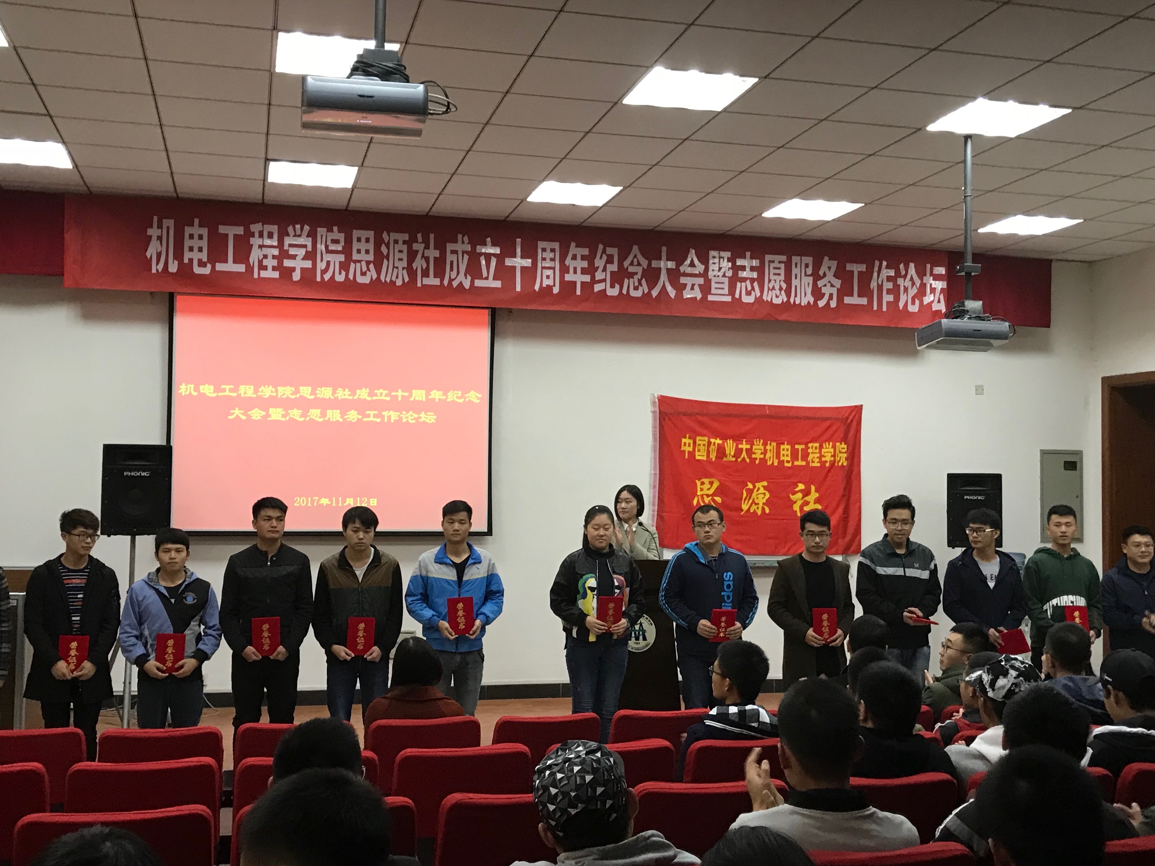 为庆祝机电思源社成立十周年,以及激发同学们的志愿热情,我校澳门六合彩资料网站 思源社于2017年11月12日下午3:30在管理澳门六合彩资料网站 报告厅开办了‘澳门六合彩资料网站 思源社成立十周年纪念大会’,思源社创始人总务部副部长张洪,副书记王蕾,书记侯德伟,辅导员邓燕飞及优秀志愿者出席了本次大会。