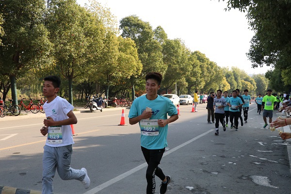 本次比赛分为迷你马拉松比赛和半程马拉松比赛。比赛的起点为中国矿业大学南湖校区图书馆。这次的比赛十分有趣,参赛的不仅有大学生,还有稚嫩的小学生和身体依旧硬朗的老人,冲淡了比赛的竞争气息,使得比赛更加轻松。尤其是有些奇装异服的参赛者,穿着皮卡丘、加菲猫等布偶装的助威者,也为漫长的马拉松增添了很多乐趣。更有澳门六合彩资料网站 志愿者服务站的志愿者们,一直伸出手臂,为过往的参赛者提供水和香蕉,时刻准备着应对突发情况,为他们加油助威,场面十分温馨。澳门六合彩资料网站 的参赛者们在侯书记和三位辅导员的带领下,不仅坚持着跑完了全程,还取得了不错的成绩。17级学生杨继宏、16级学生崔建国分别取得了迷你马拉松第六、第七的好成绩。他们在晴朗阳光下的身姿充满着生命的活力,不仅体现了当代大学生的朝气,还显露出永不言弃的品质。