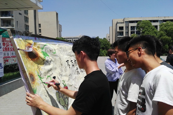 每年的5月25日(谐音“我爱我”)是全国大中学生心理健康日。中午时分,各院心理自助中心部员早早来到活动现场进行准备工作。活动开始,前来就餐的同学纷纷驻足观看展板并由活动的工作人员在旁边为同学们介绍活动的形式与意义。据工作人员介绍,本次活动为了吸引同学们参与特意准备了三个游戏,分别是“纸杯吹乒乓球”“十秒跳绳”和“心愿给予糖一墙”。比如第一个活动,工作人员将七个纸杯排成一条线,纸杯填满水,把乒乓球放在第一个纸杯内。挑战者需要通过用嘴吹乒乓球,使其一次通过七个纸杯则获得一颗糖。新颖的活动方式和积极向上的活动意义吸引了不少同学前来参加,工作人员随即引导前来参加活动的同学。烈日没有打消同学们的热情,活动持续了许久,展板上已经写满了同学们的心愿。虽然放弃了宝贵的午休时间,但工作人员纷纷表示希望活动能持续进行下去以收到更多同学们的心愿。