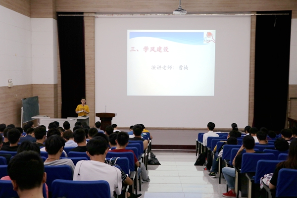 接着,根据《关于进一步提升本科生学风水平的实施办法》的文件精神,曹楠老师首先提到强化学习价值取向,指出现代大学生缺少压力,从而造成学习中自觉性与主动性的缺失。接着,讲到学生课堂行为的规范,指出公教区中部分不文明的行为。在宿舍风气问题上,曹楠老师提出不少宿舍缺少学习氛围,希望宿舍成员能够齐心协力,养成良好的学习与生活习惯。接下来,讲到考风考纪的整顿问题,学校将考试诚信作为学风建设的重要环节常抓不懈,对于考试作弊的学生进行严肃处理。同时,曹楠老师希望同学们能够自觉遵循学术规范,恪守学术道德。在大学生活中不断累积实力,为毕业论文的撰写打好坚实的基础。
