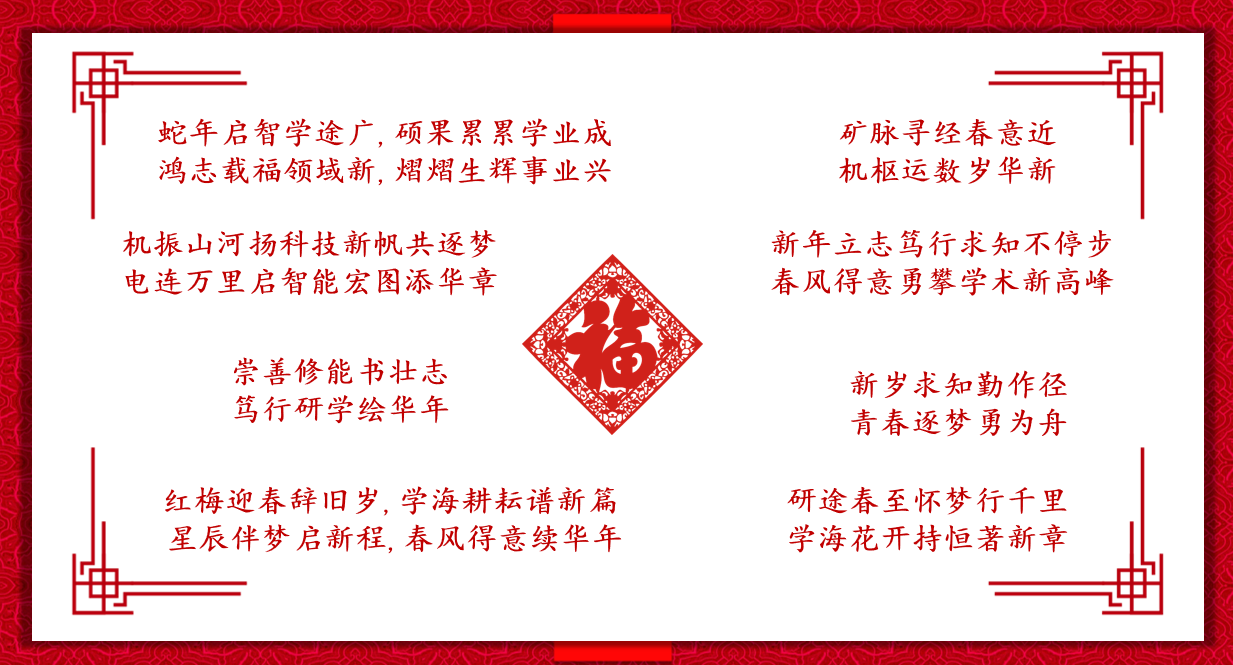 活动由春联内容征集和春联书写两部分组成,同学们充分发挥个人才学,结合春节传统文化和澳门六合彩资料网站 专业特色积极进行春联内容创作,擅长书法的同学们纷纷挥毫泼墨,呈现出如“机振山河扬科技新帆共逐梦,电连万里启智能宏图添华章”、“崇善修能书壮志,笃行研学绘华年”、“研途春至怀梦行千里,学海花开持恒著新章”等众多内容精思巧构、洋溢青春奋进正当时的优秀春联作品。