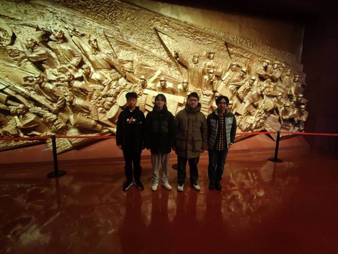 淮海战役纪念馆调研团队一踏入淮海战役纪念馆大厅,便被大厅鲜艳的红色和背景灿烂的金色所深深震撼。从一开始就唤醒了团队学生们埋藏在心底的红色基因,他们用满怀感激和悲壮的心情去看待纪念馆的一切事物。